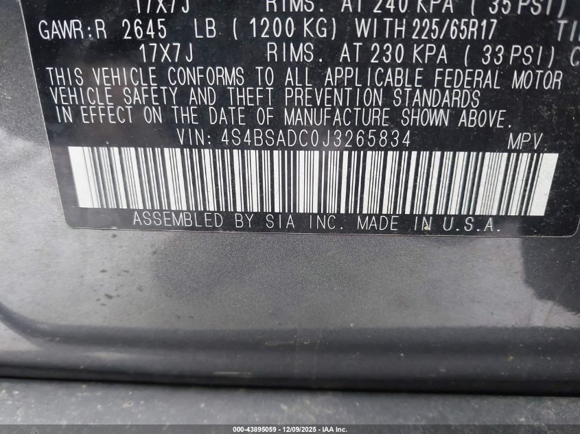 Колір СірийЦиліндри 4Привід Повний привідVIN 4S4BSADC0J3265834Стан Заводиться та їде (перевірено)Ушкодження Передня або задня AutoRIA