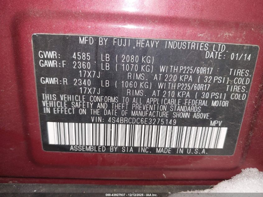 2014 SUBARU OUTBACK 2.5I LIMITED