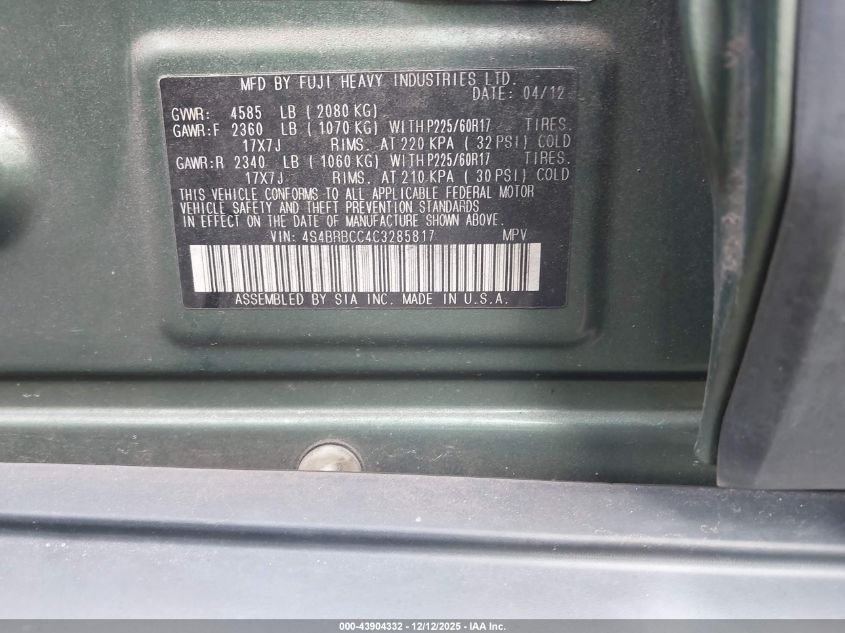 Колір ЗеленийЦиліндри 4Привід Повний привідVIN 4S4BRBCC4C3285817Стан СтаціонарноУшкодження Звичайний знос AutoRIA
