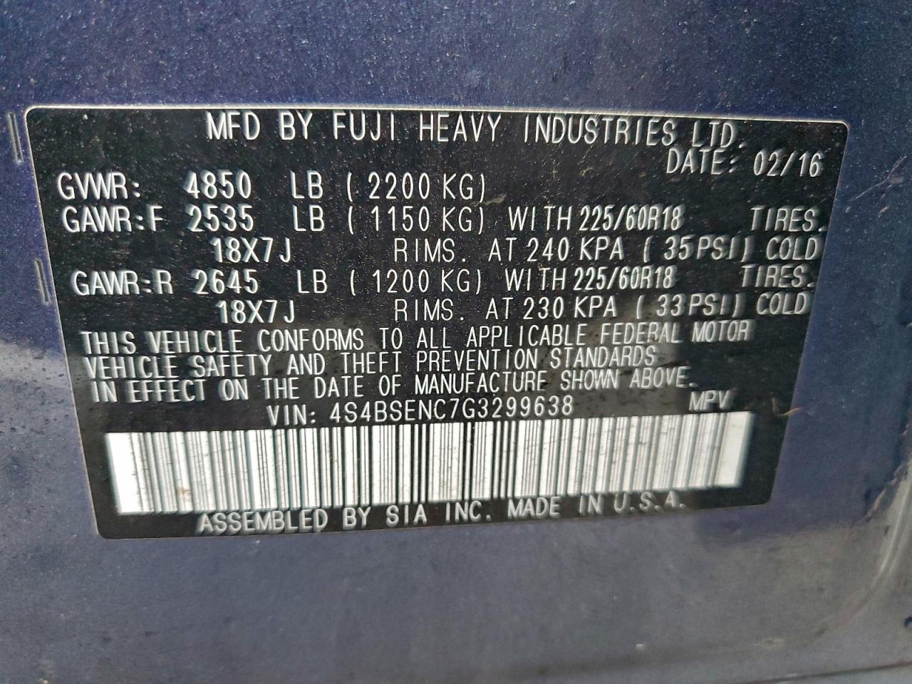 Колір СинійЦиліндри 6Привід Повний привідVIN 4S4BSENC7G3299638Стан Заводиться та їде (перевірено)Ушкодження Передня або задня AutoRIA