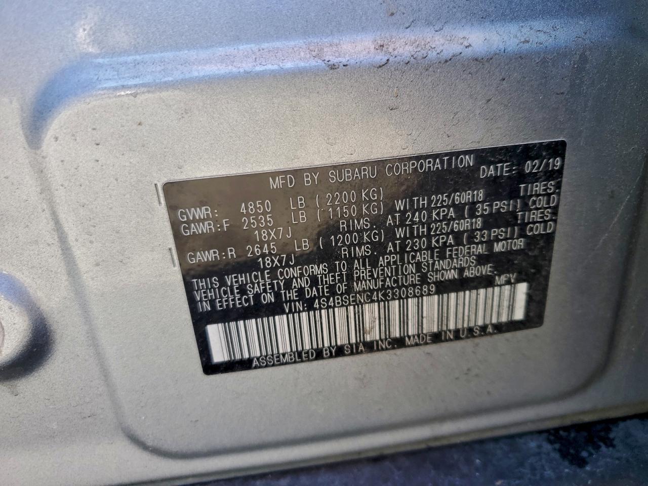 2019 SUBARU OUTBACK 2.5I PREMIUM