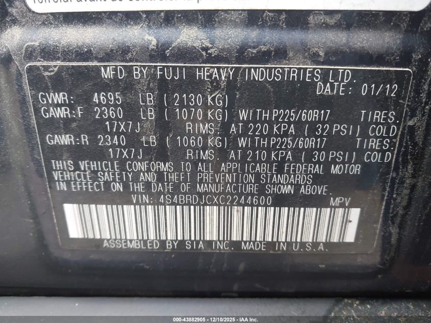 2012 SUBARU OUTBACK 2012 року Бензин, 3.6, Повний привід, vin - 4S4BRDJCXC2244600 з США