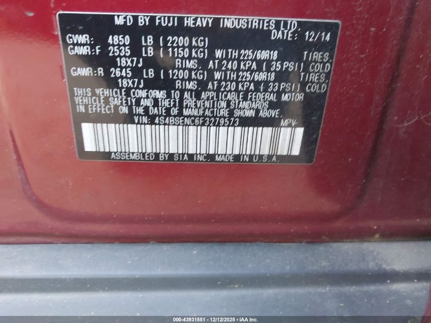 2015 SUBARU OUTBACK 3.6R LIMITED