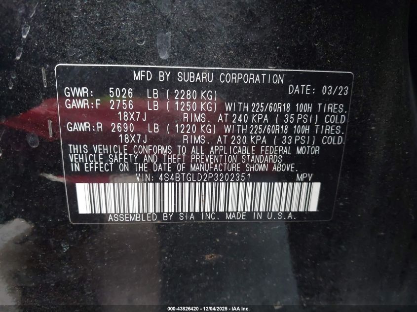 2023 SUBARU OUTBACK 2023 року Бензин, 2.4, Повний привід, vin - 4S4BTGLD2P3202351 з США