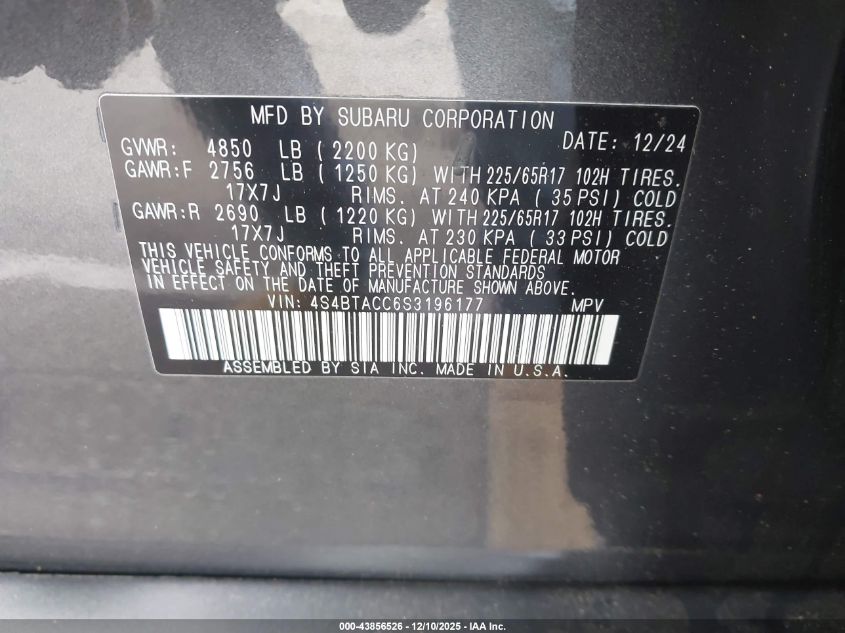 2025 SUBARU OUTBACK 2025 року Бензин, 2.5, Повний привід, vin - 4S4BTACC6S3196177 з США