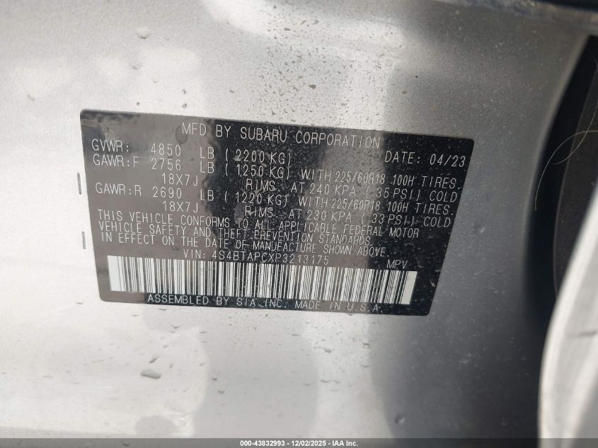 2023 SUBARU OUTBACK 2023 року Бензин, 2.5, Повний привід, vin - 4S4BTAPCXP3213175 з США