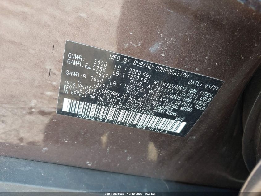 2021 SUBARU OUTBACK 2021 року Бензин, 2.4, Повний привід, vin - 4S4BTGPD6M3220860 з США