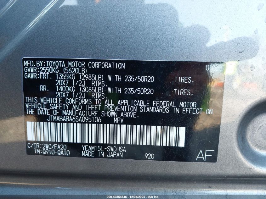 Колір СірийПривід Повний привідVIN JTMABABA6SA095106Стан НевідомоУшкодження Передня або задня