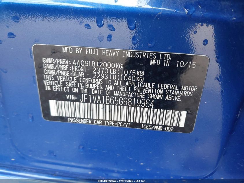 2016 SUBARU WRX 2016 року Бензин, 2.0, Повний привід, vin - JF1VA1B65G9819964 з США