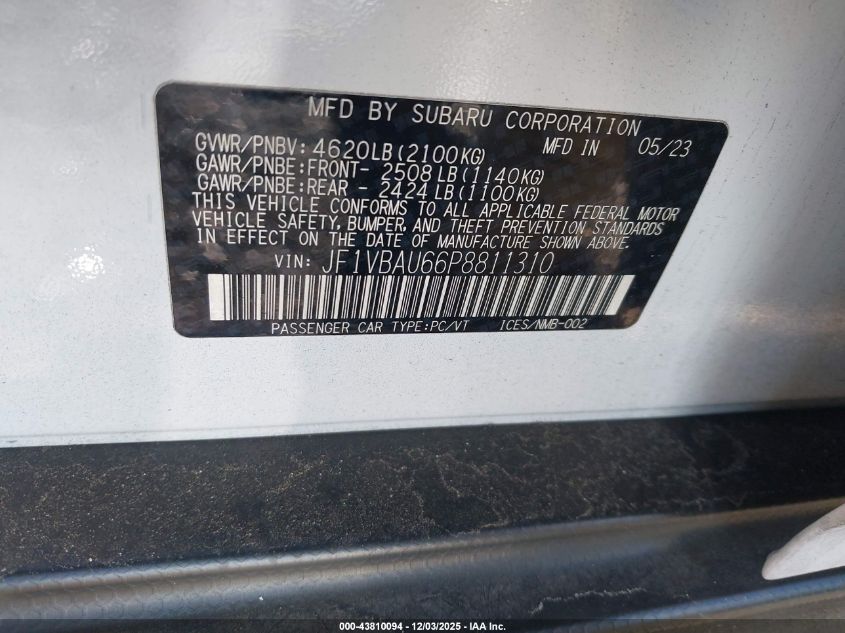 2023 SUBARU WRX 2023 року Бензин, 2.4, Повний привід, vin - JF1VBAU66P8811310 з США