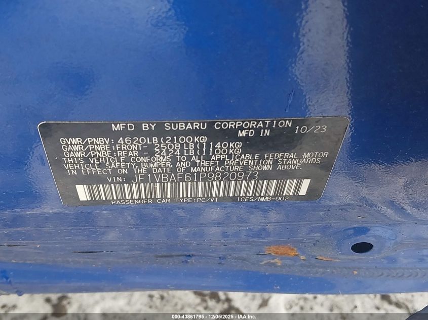 2023 SUBARU WRX 2023 року Бензин, 2.4, Повний привід, vin - JF1VBAF61P9820973 з США