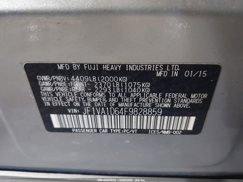 2015 SUBARU WRX 2015 року Бензин, 2.0, Повний привід, vin - JF1VA1D64F9828859 з США