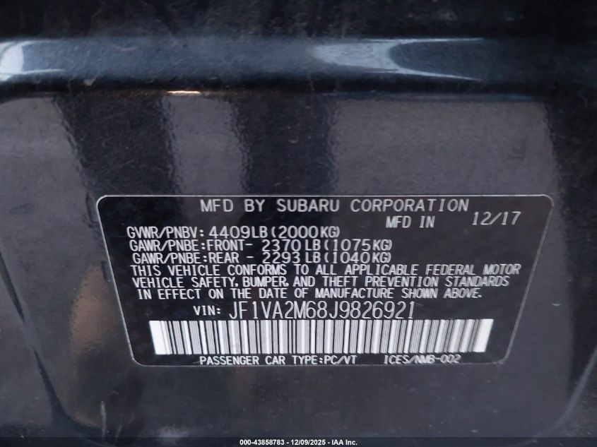 2018 SUBARU WRX 2018 року Бензин, 2.5, Повний привід, vin - JF1VA2M68J9826921 з США