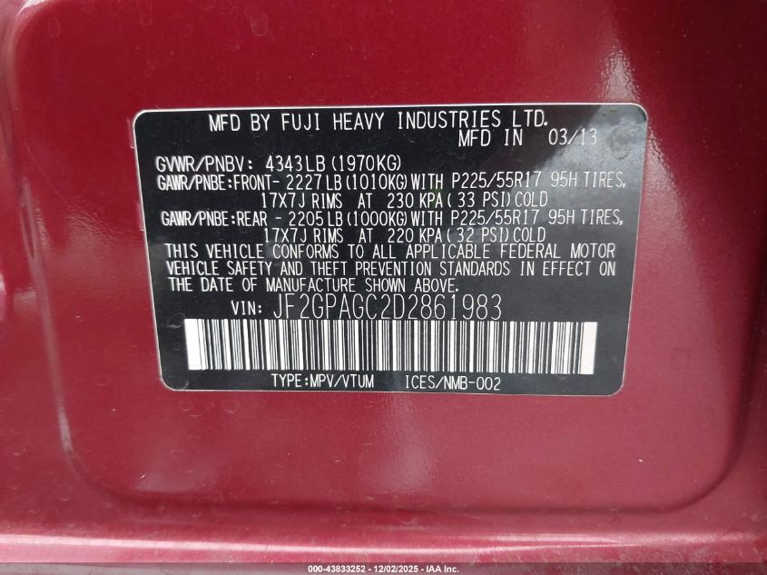 Колір ЧервонийЦиліндри 4Привід Повний привідVIN JF2GPAGC2D2861983Стан Заводиться та їде (перевірено)Ушкодження Передня або задня AutoRIA