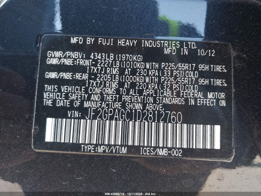Колір Циліндри 4Привід Повний привідVIN JF2GPAGC1D2812760Стан НевідомоУшкодження Права сторона AutoRIA