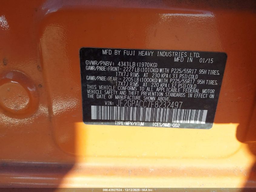 2015 SUBARU XV 2015 року Бензин, 2.0, Повний привід, vin - JF2GPACC7F8232497 з США