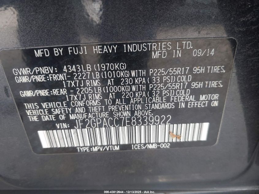 2014 SUBARU XV 2014 року Бензин, 2.0, Повний привід, vin - JF2GPACC7E8339922 з США