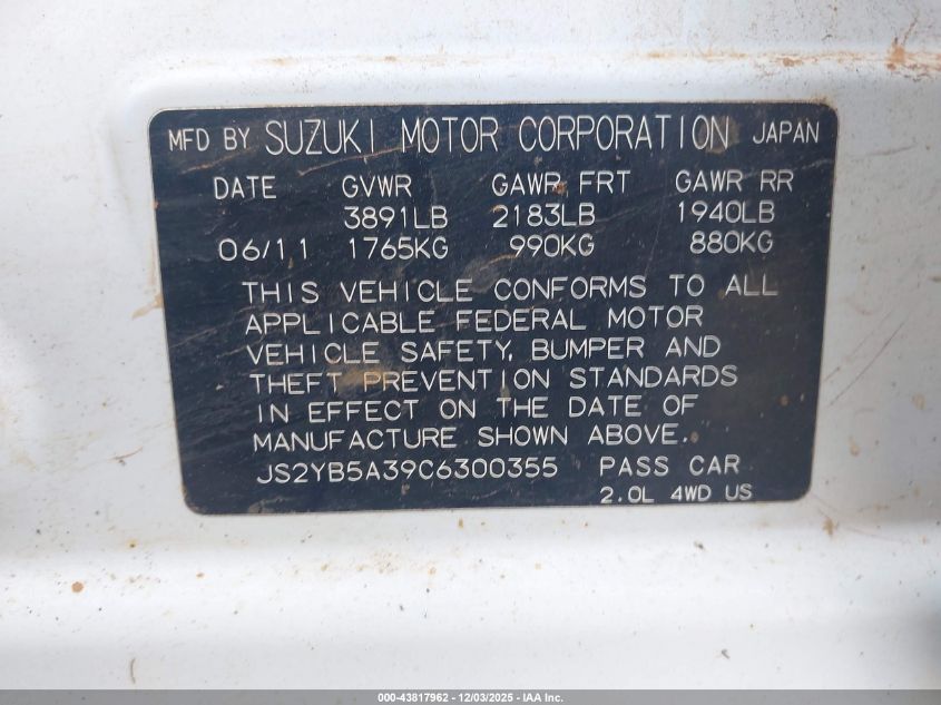 2012 SUZUKI SX4 2012 року Бензин, 2.0, Повний привід, vin - JS2YB5A39C6300355 з США