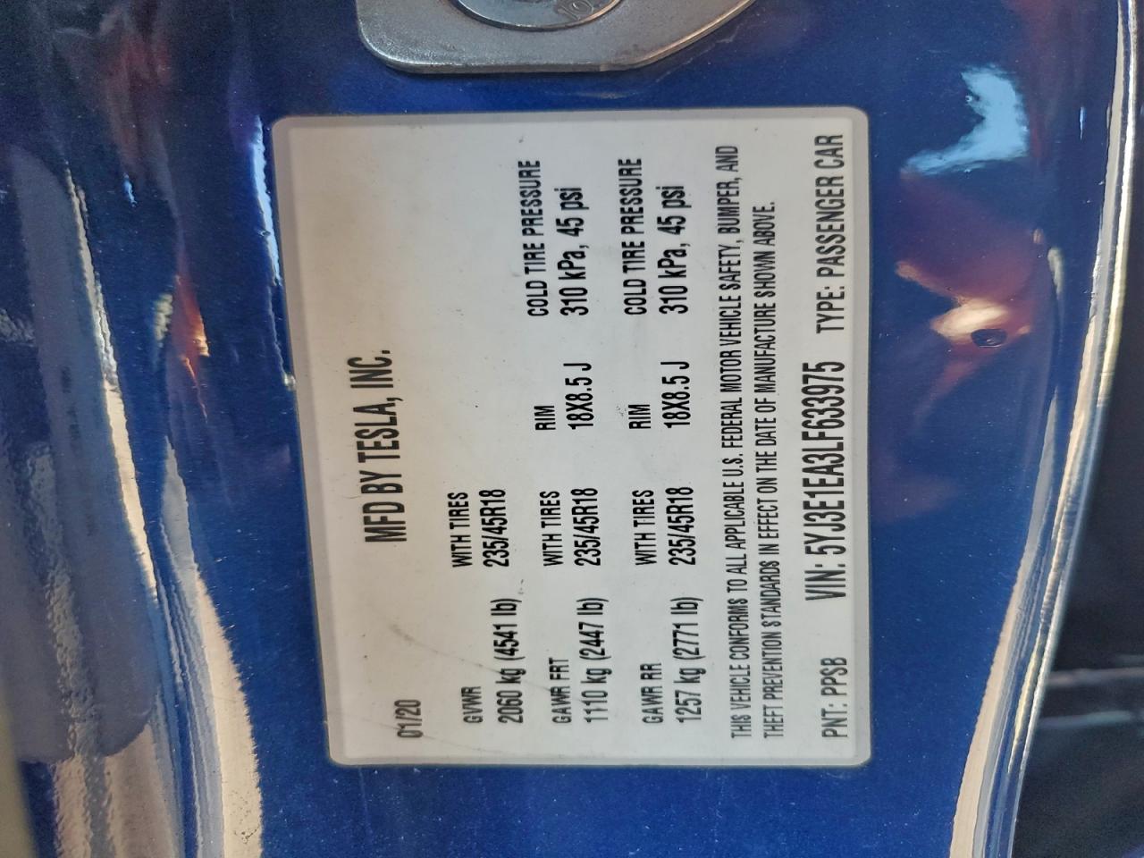 2020 TESLA MODEL 3 2020 року Електричний, , Задній привід, vin - 5YJ3E1EA3LF633975 з США