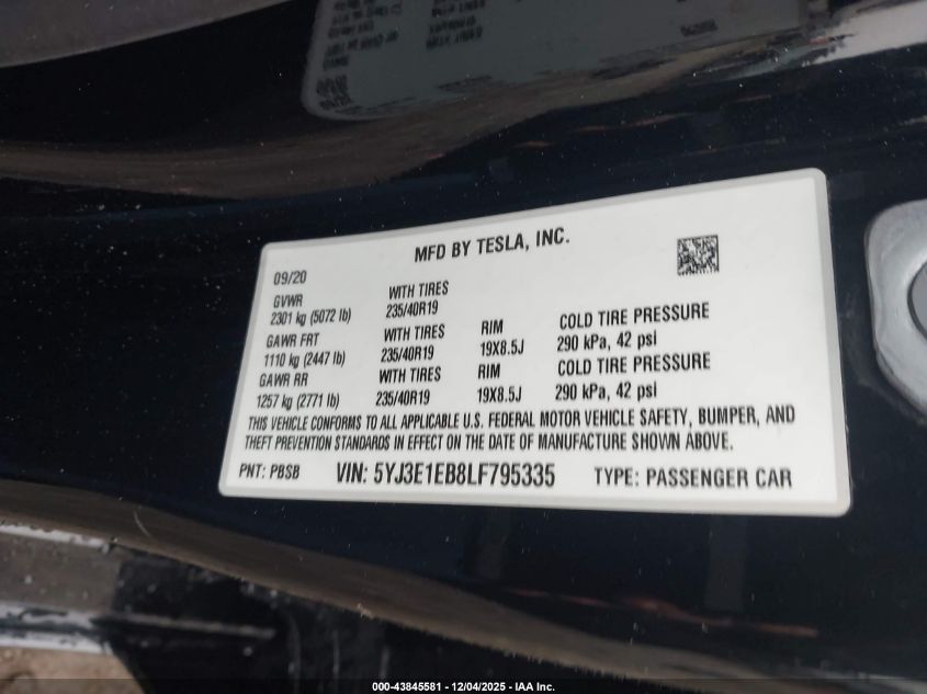 2020 TESLA MODEL 3