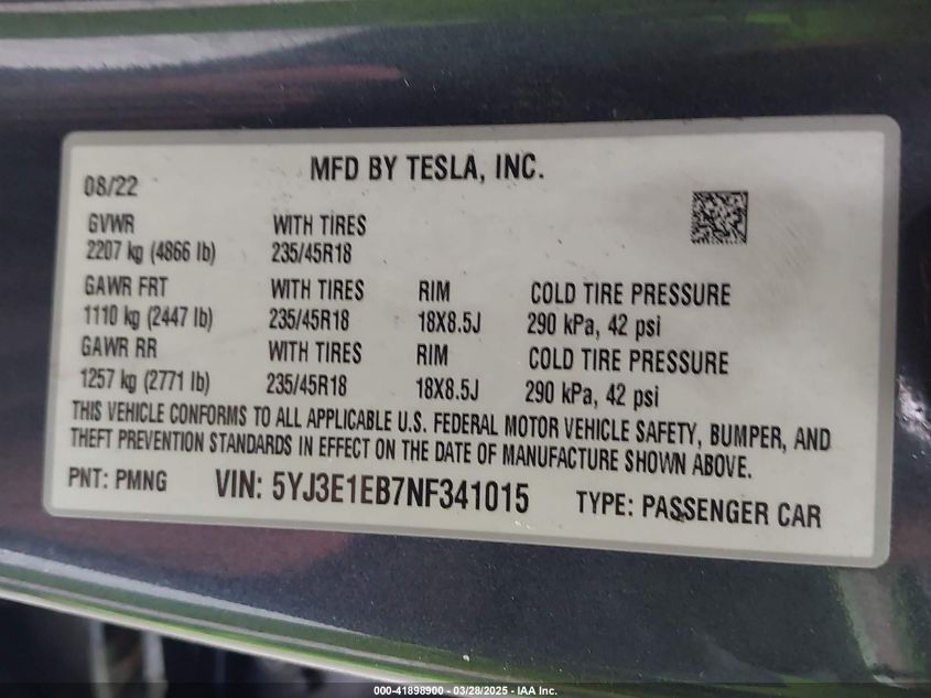 2022 TESLA MODEL 3