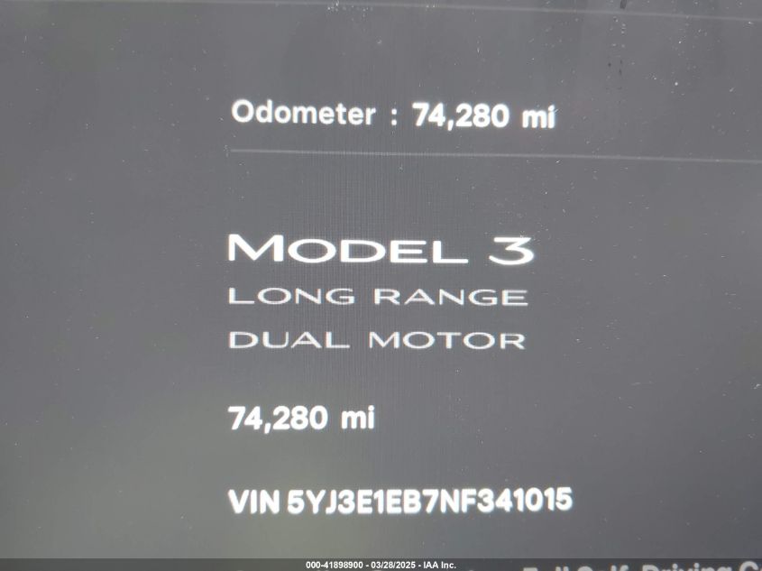 2022 TESLA MODEL 3 2022 року Електричний, U, Повний привід, vin - 5YJ3E1EB7NF341015 з США