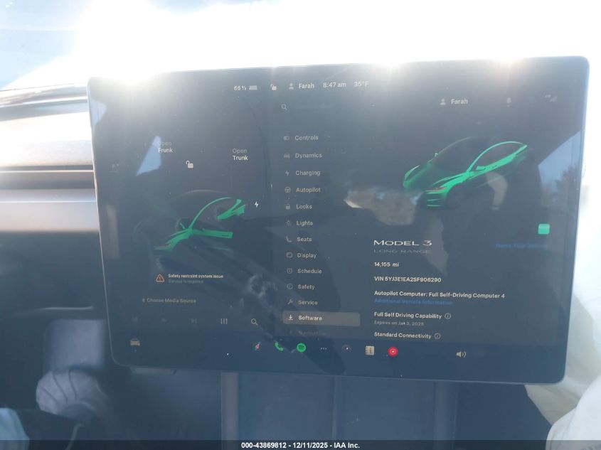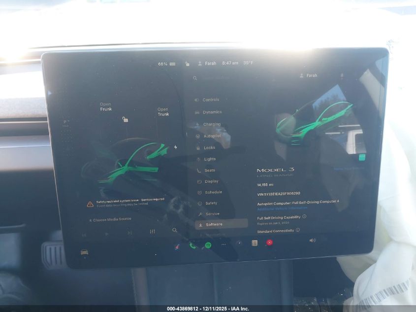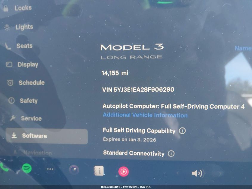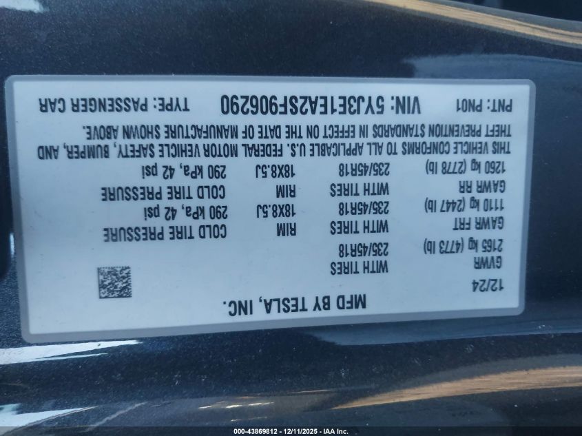 2025 TESLA MODEL 3 2025 року Електричний, U, Задній привід, vin - 5YJ3E1EA2SF906290 з США