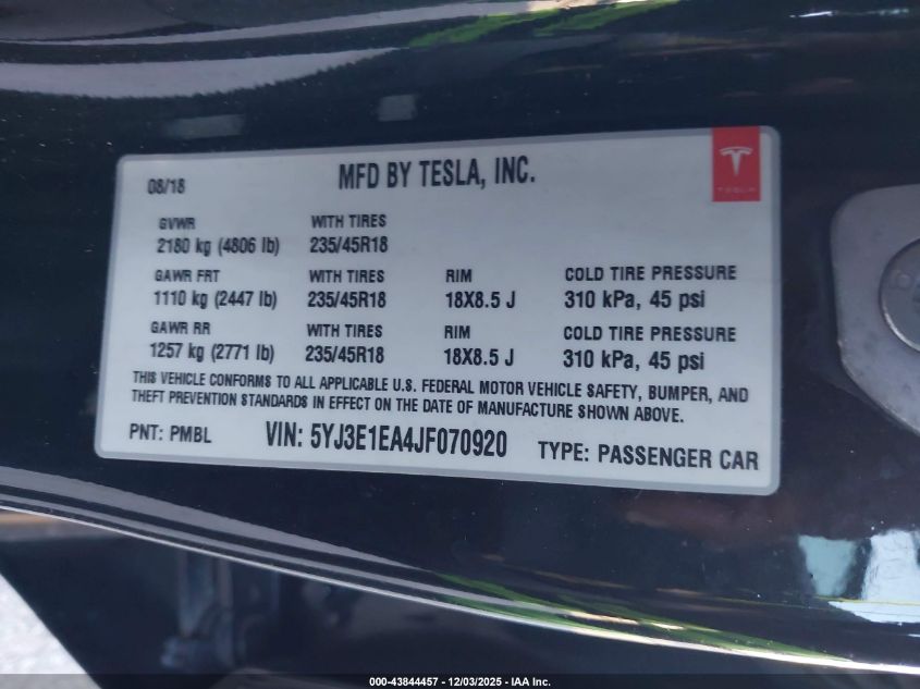 2018 TESLA MODEL 3