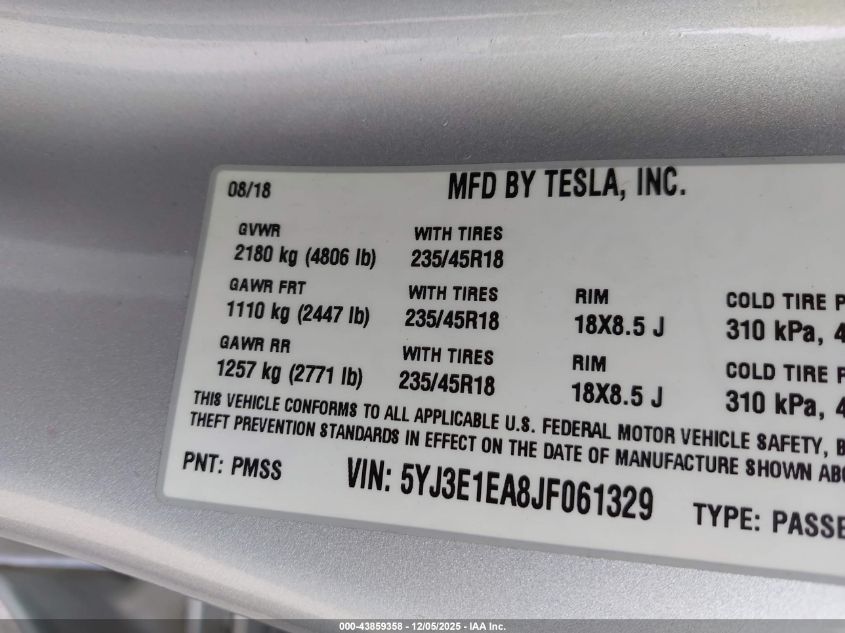 2018 TESLA MODEL 3