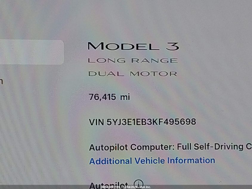 2019 TESLA MODEL 3 2019 року Електричний, U, Повний привід, vin - 5YJ3E1EB3KF495698 з США
