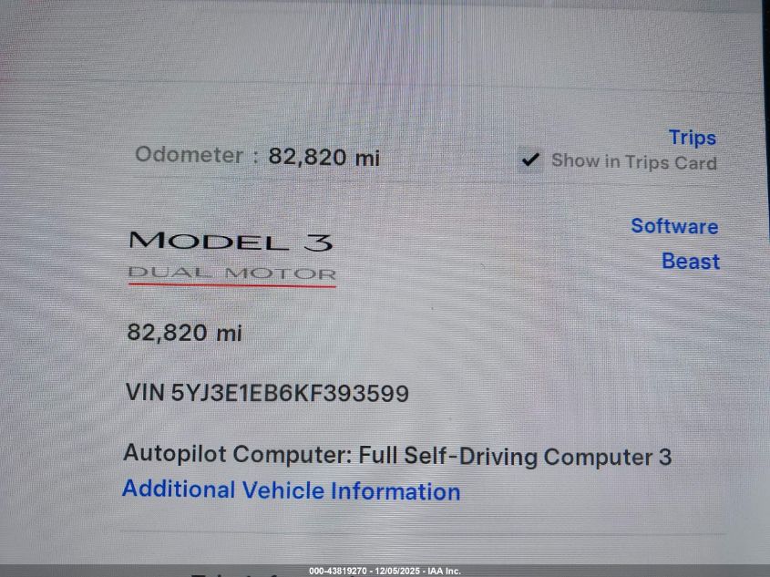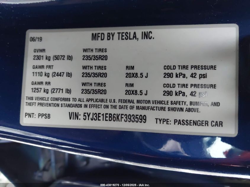2019 TESLA MODEL 3 2019 року Електричний, U, Повний привід, vin - 5YJ3E1EB6KF393599 з США