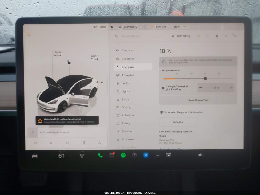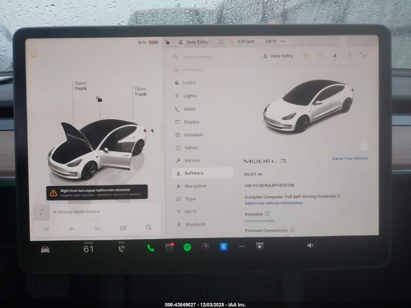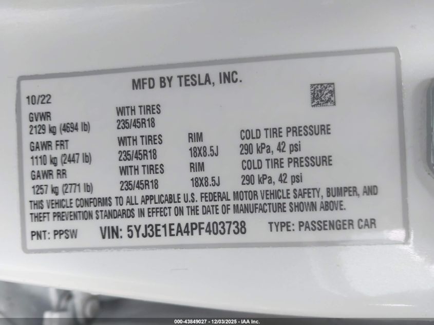 2023 TESLA MODEL 3 2023 року Електричний, U, Задній привід, vin - 5YJ3E1EA4PF403738 з США