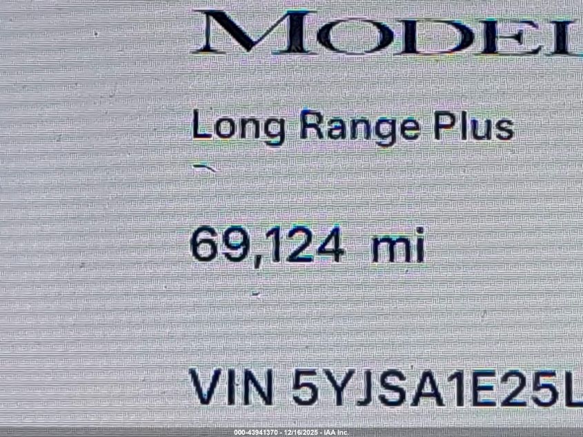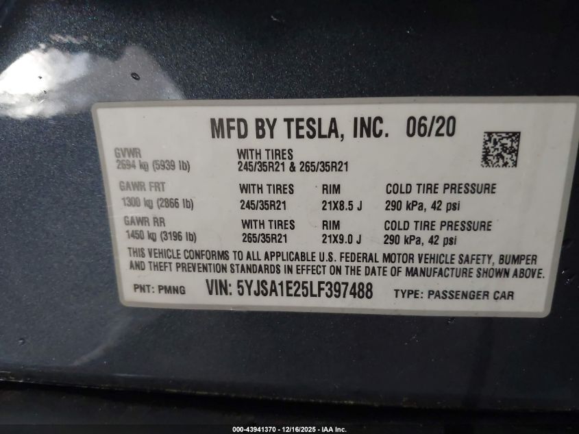 2020 TESLA MODEL S 2020 року Електричний, U, Повний привід, vin - 5YJSA1E25LF397488 з США