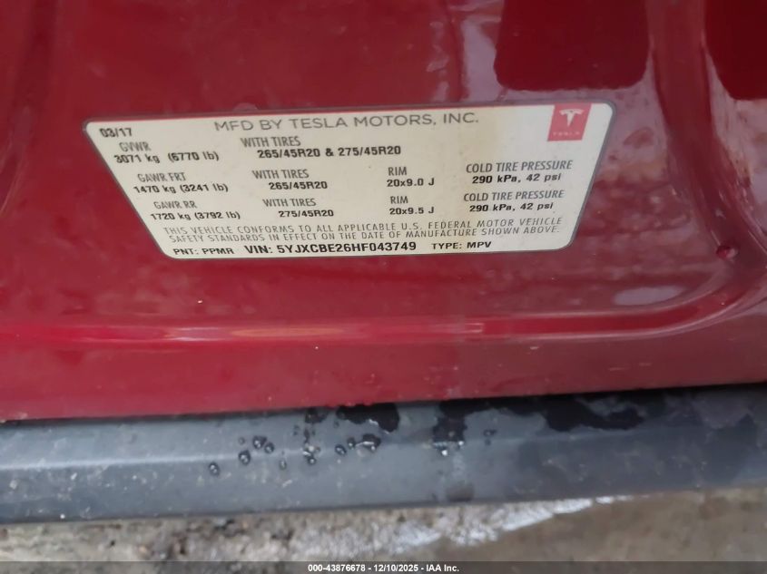 2017 TESLA MODEL X 2017 року Електричний, U, Повний привід, vin - 5YJXCBE26HF043749 з США