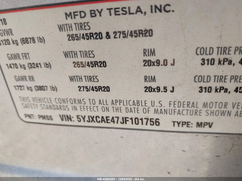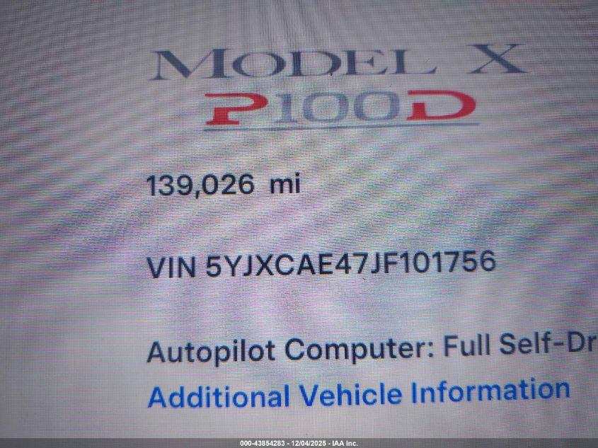 2018 TESLA MODEL X 2018 року Електричний, U, Повний привід, vin - 5YJXCAE47JF101756 з США