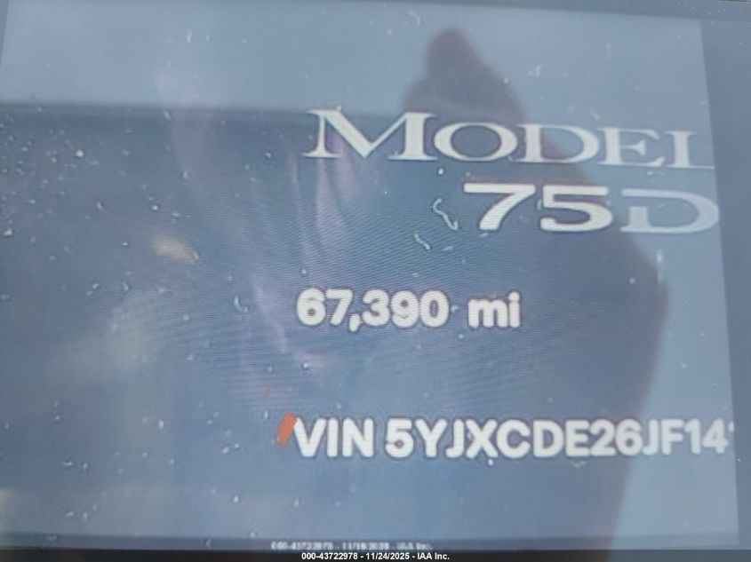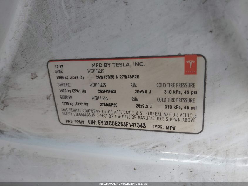2018 TESLA MODEL X 2018 року Електричний, U, Повний привід, vin - 5YJXCDE26JF141343 з США