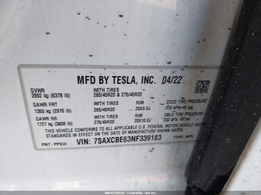 2022 TESLA MODEL X 2022 року Електричний, U, Повний привід, vin - 7SAXCBE63NF339183 з США