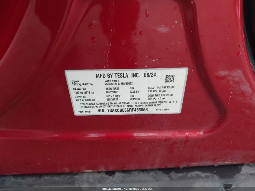 2024 TESLA MODEL X 2024 року Електричний, U, Повний привід, vin - 7SAXCBE66RF456066 з США