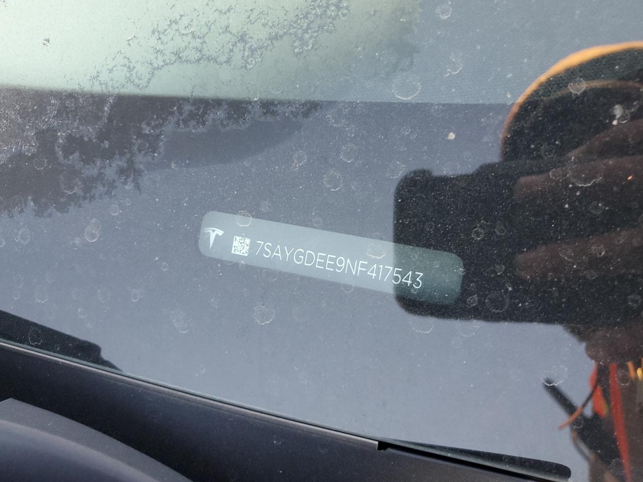 2022 TESLA MODEL Y 2022 року Електричний, , Повний привід, vin - 7SAYGDEE9NF417543 з США