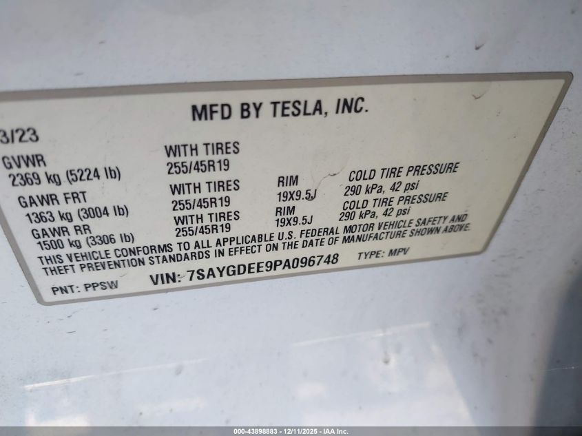 2023 TESLA MODEL Y 2023 року Електричний, U, Повний привід, vin - 7SAYGDEE9PA096748 з США