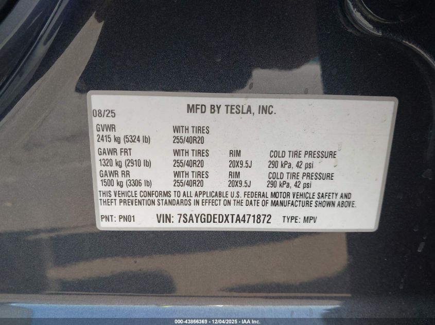 2026 TESLA MODEL Y 2026 року Електричний, U, , vin - 7SAYGDEDXTA471872 з США