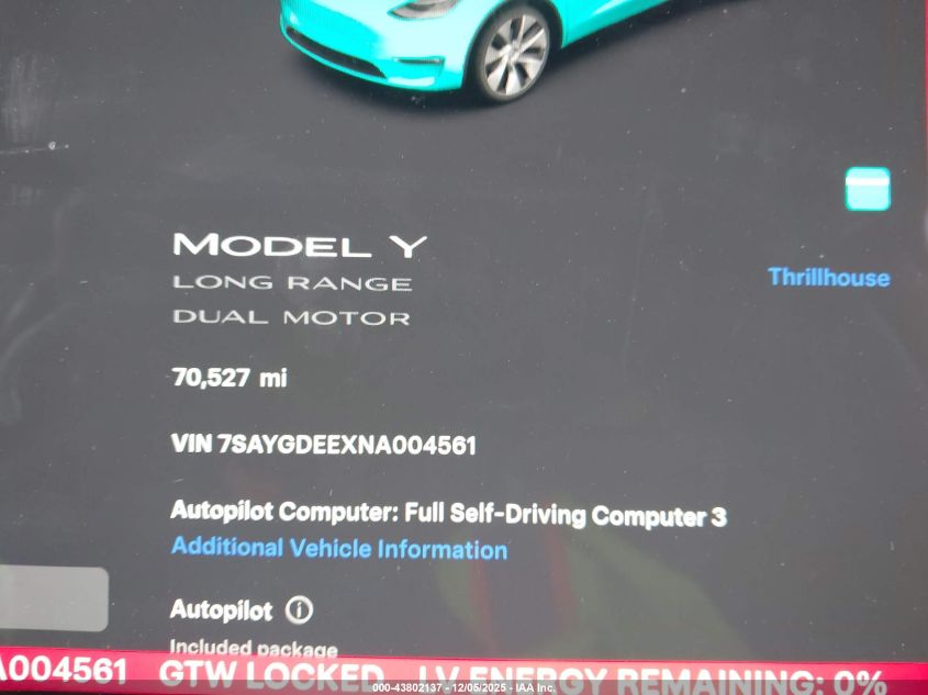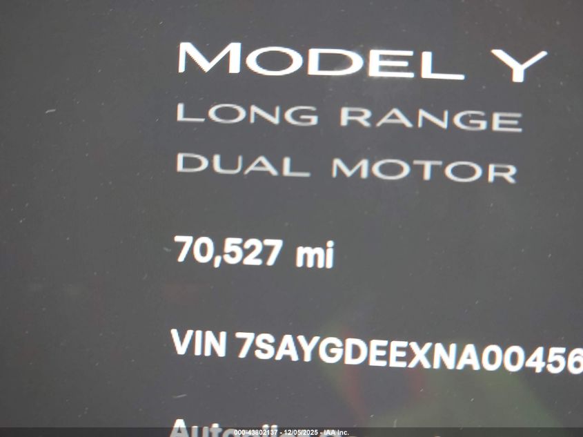 2022 TESLA MODEL Y 2022 року Електричний, U, Повний привід, vin - 7SAYGDEEXNA004561 з США