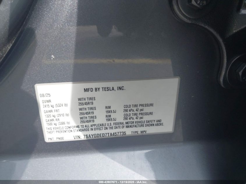 2026 TESLA MODEL Y 2026 року Електричний, U, , vin - 7SAYGDED7TA457735 з США