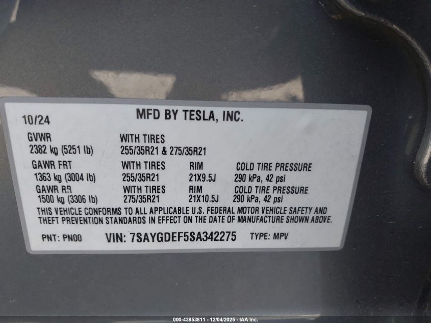 2025 TESLA MODEL Y 2025 року Електричний, U, Повний привід, vin - 7SAYGDEF5SA342275 з США