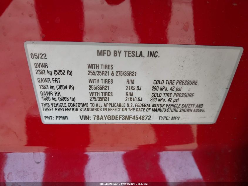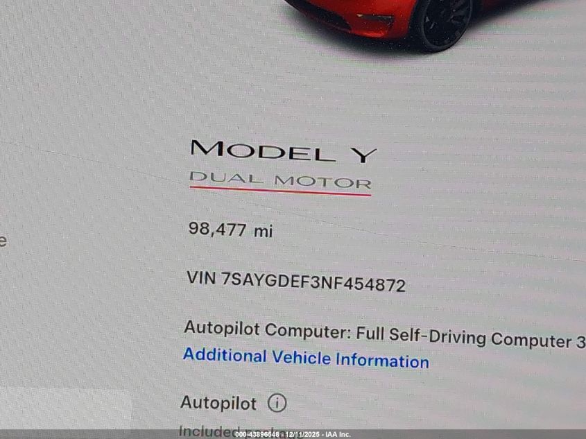 2022 TESLA MODEL Y 2022 року Електричний, U, Повний привід, vin - 7SAYGDEF3NF454872 з США