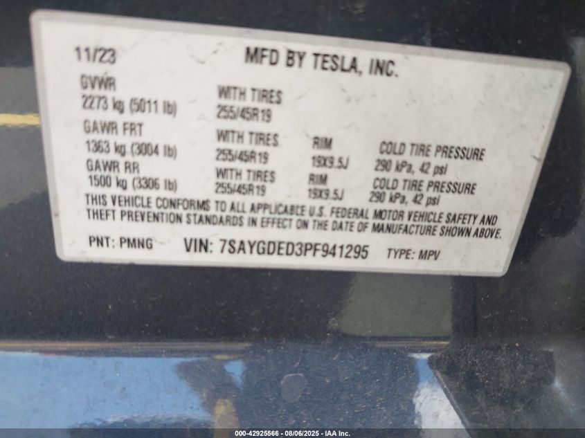 2023 TESLA MODEL Y 2023 року Електричний, U, , vin - 7SAYGDED3PF941295 з США