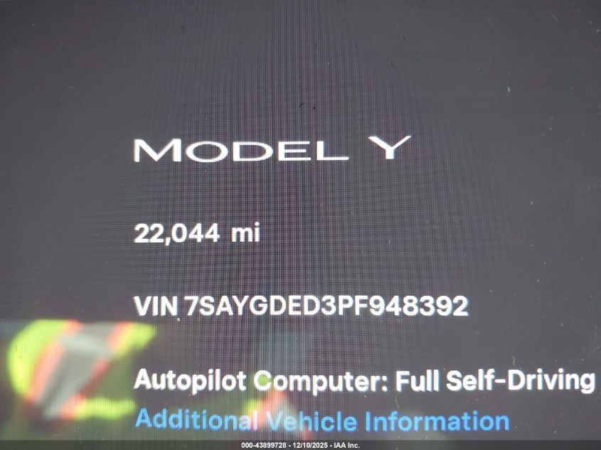 2023 TESLA MODEL Y 2023 року Електричний, U, , vin - 7SAYGDED3PF948392 з США