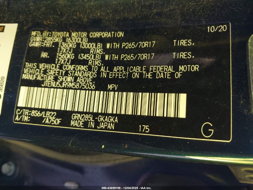 2021 TOYOTA 4RUNNER 2021 року Бензин, 4.0, Повний привід, vin - JTENU5JR9M5875036 з США