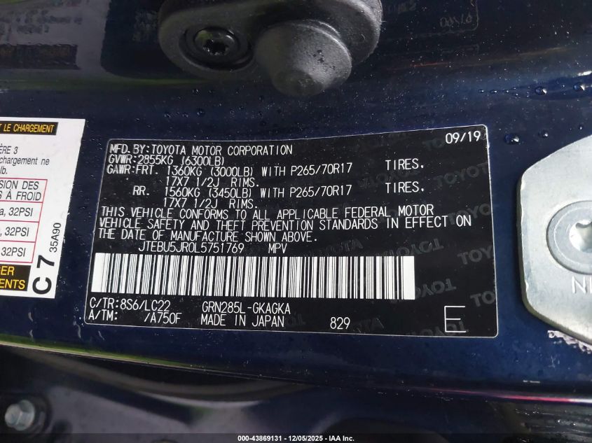 2020 TOYOTA 4RUNNER SR5/SR5 PREMIUM