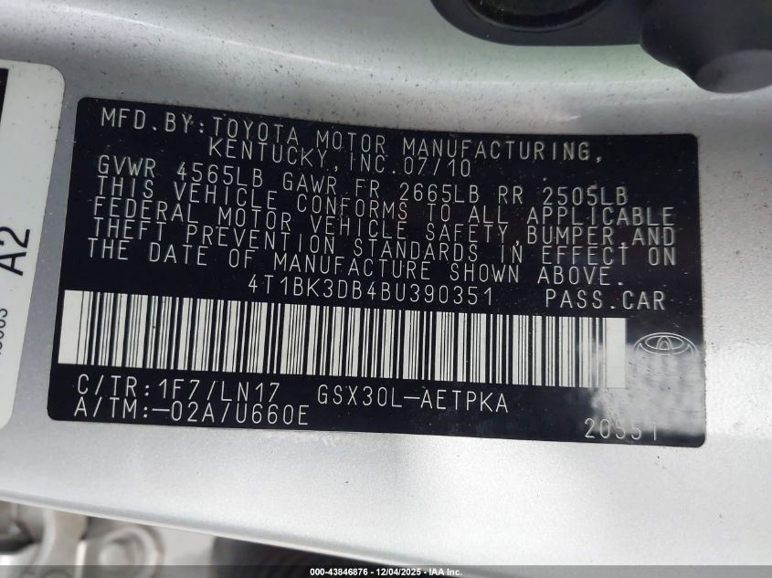 2011 TOYOTA AVALON 2011 року Бензин, 3.5, Передній привід, vin - 4T1BK3DB4BU390351 з США